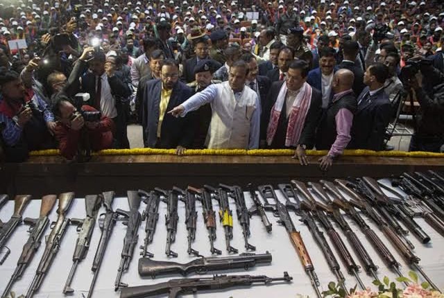 असम : मुख्यमंत्री सोनोवाल की उपस्थिति में 1615 उग्रवादियों ने आत्मसमर्पण किया, हफ्ते भर में यह दूसरा समर्पण।
