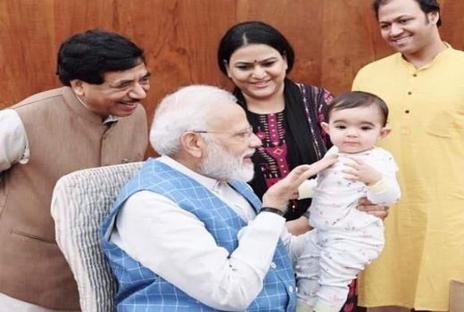 (एनएलएन मीडिया – न्यूज़ लाइव नाऊ) :प्रधानमंत्री नरेंद्र मोदी ने मंगलवार को इंस्‍टाग्राम पर एक तस्‍वीर शेयर कर बताया कि संसद में आज उनका खास मित्र उनसे मिलने आया। प्रधानमंत्री के साथ तस्‍वीर में उनका खास मित्र एक मासूम और प्‍यारी बच्‍ची है। प्रधानमंत्री का यह खास मित्र भाजपा सांसद सत्‍यनारायण जाटिया की पोती है। दरअसल, संसद में आज भाजपा सांसद सत्‍यनारायण जाटिया अपने बेटे, बहू व पोती के साथ प्रधानमंत्री से मिलने पहुंचे। तस्‍वीर के साथ उन्‍होंने कैप्‍शन लिखा है- ‘एक बहुत स्‍पेशल मित्र उनसे संसद में मिलने आया।‘ हालांकि इस मासूम बच्‍ची के बारे में उन्‍होंने कुछ जानकारी नहीं दी है।’ प्रधानमंत्री की गोद में उनका यह खास मित्र काफी खुश नजर आ रही है। फोटो में मेज पर कुछ चॉकलेट्स भी रखी हुई है।सोशल मीडिया पर सक्रिय रहने वाले प्रधानमंत्री मोदी विदेश दौरे के दौरान भी नन्‍हे बच्‍चों से मिलते रहे हैं।इंस्‍टाग्राम पर प्रधानमंत्री नरेंद्र मोदी दुनिया में सबसे अधिक फॉलो किए जाने वालों में से एक हैं। यहां उनके 25 मिलियन से अधिक फॉलोअर्स हैं लेकिन वे किसी को फॉलो नहीं करते।मंगलवार को जैसे ही प्रधानमंत्री नरेंद्र मोदी ने अपने कार्यालय में आई नन्हीं रुद्राक्षी के साथ अपनी तस्वीरें इंस्टाग्राम पर पोस्ट कीं, लोग इसे देखने उमड़ पड़े। देखते ही देखते रुद्राक्षी इंटरनेट सनसनी बन गई। कुछ ही देर में यह तस्वीर इंस्टाग्राम पर पीएम मोदी की सबसे ज्यादा देखी गई तस्वीरों में शुमार हो गई। इसे 25 लाख से ज्यादा लोगों ने लाइक किया।रुद्राक्षी भाजपा के राज्यसभा सदस्य सत्य नारायण जटिया की आठ माह की पोती है। मध्य प्रदेश के उज्जैन निवासी सत्य नारायण जटिया अपने बेटे, बहू और पोती के साथ प्रधानमंत्री से मिलने पहुंचे थे।’संसद भवन में एक खास दोस्त मिलने आया’ के कैप्शन के साथ पीएम मोदी के इंस्टाग्राम अकाउंट पर तस्वीर आते ही लोगों ने बच्ची की पहचान को लेकर तरह-तरह के कयास लगाने शुरू कर दिए थे। आलोचक और समर्थक सब अपनी-अपनी तरह से पोस्ट करने में जुटे थे।इन टिप्पणियों के बीच भाजपा सांसद अनुराग ठाकुर ने लिखा, ‘भविष्य सुरक्षित हाथों में है।’ जम्मू-कश्मीर के पूर्व मुख्यमंत्री उमर अब्दुल्ला ने भी इस पर टिप्पणी की। उन्होंने कश्मीर मसले पर मध्यस्थता को लेकर अमेरिका के राष्ट्रपति डोनाल्ड ट्रंप के बयान के बाद संसद में चल रहे गतिरोध से इस तस्वीर को जोड़ा। उन्होंने लिखा, ‘बहुत प्यारी तस्वीर। जब विपक्षी पार्टियां ट्रंप मामले पर प्रधानमंत्री से सफाई मांगने का हल्ला मचा रही थीं, उस समय यह तस्वीर पोस्ट करके पीएम ने बता दिया कि विपक्षियों की मांग के बारे में वह क्या सोचते हैं।’ इंस्टाग्राम पर मोदी के 2.5 करोड़ से ज्यादा फॉ