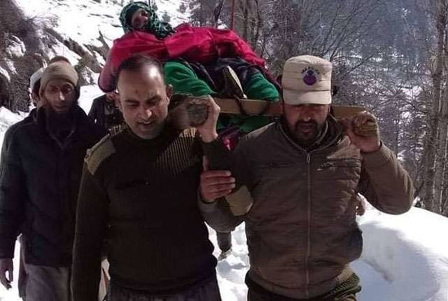 गर्भवती महिला को जवानों ने घंटों गहरी बर्फ में चलकर पहुंचाया अस्पताल !