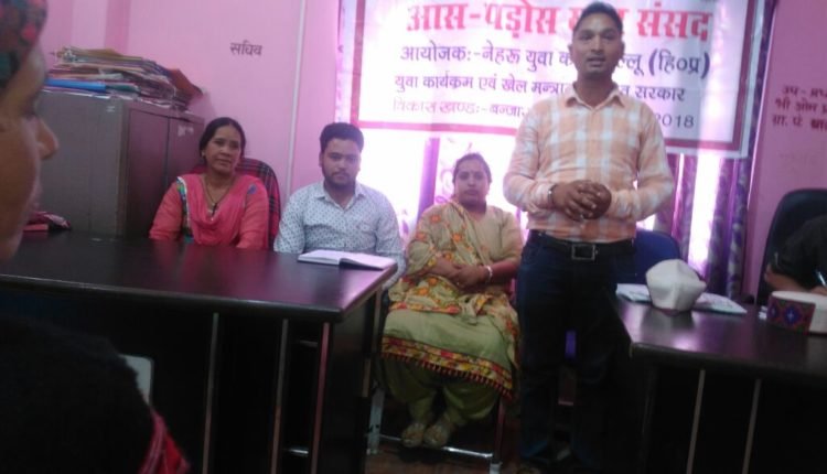 कुल्लू :नेहरु युवा केन्द्र द्वारा खण्ड स्तरीय आस पड़ोस युवा संसद कार्यक्रम का आयोजन दिनांक19 जून 2018 को बंजार ब्लाॅक की घियागी पंचायत में आयोजित किया गया। इस कार्यक्रम मे विभिन्न युवक मण्डल व महिला मण्डलों ,स्वयं सहायता समूह व गैर सरकारी संस्थाओं के 70 सदस्यों ने हिस्सा लिया। इस कार्यक्रम का मुख्य उदेष्य युवक मण्डलों को संगठित कर राष्ट्र निर्माण की गतिविधियों में शामिल करना है। इस कार्यक्रम में ग्राम पंचायत प्रधान श्री जय सिंह  ,उप प्रधान ओम प्रकाश तथा प्रथम एजुकेशन से डिस्ट्रिक्ट कोआॅर्डिनेटर श्री पुरुषोतम ठाकुर रिर्सोस पर्सन इस कार्यक्रम में रहे।