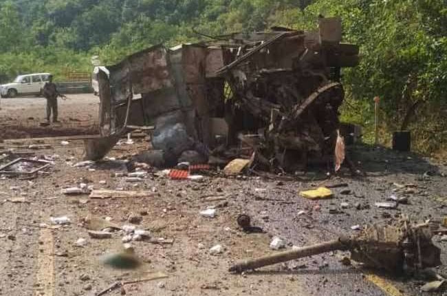 छत्तीसगढ़ में नक्सलियों ने उड़ाई मिनी बस, CISF जवान सहित 5 की मौत।