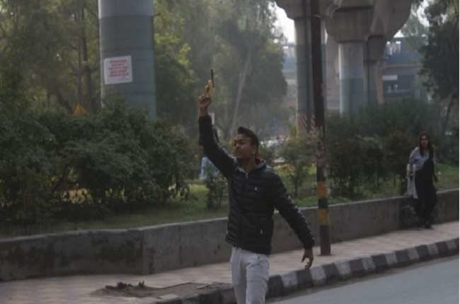 जामिया के समीप दिल्ली पुलिस के सामने युवक ने की फायरिंग, एक घायल।