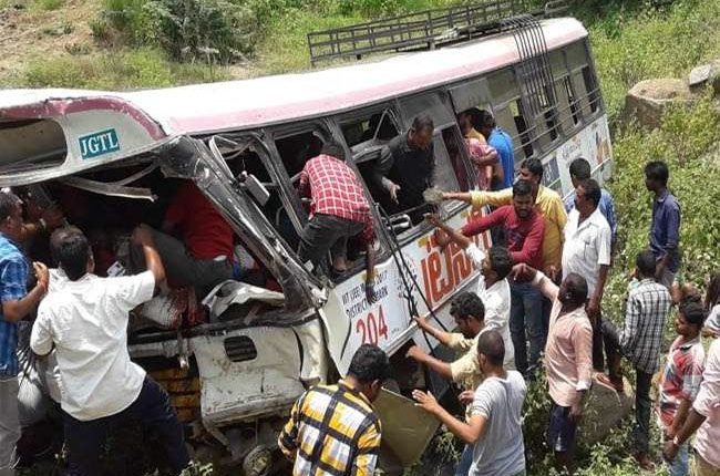तेलंगाना: बस खाई में गिरने से 10 लोगों की मौके पर ही मौत
