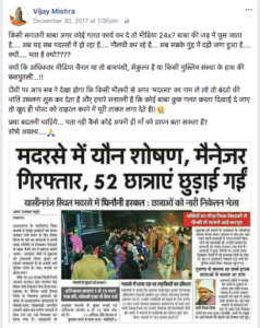 -किसी सनातनी बाबा अगर कोई गलत कार्य कर दे तो मीडिया 24×7 बाबा की जड़ में घुस जाता है…. अब यह सब मदरसों में हो रहा है…. मौलवी कर रहे है… अब सबके मुंह में दही जमा हुआ है…. क्यों…. पता है क्यो????