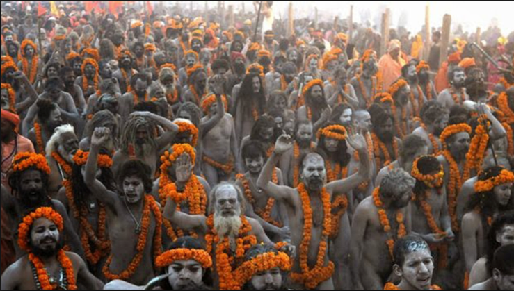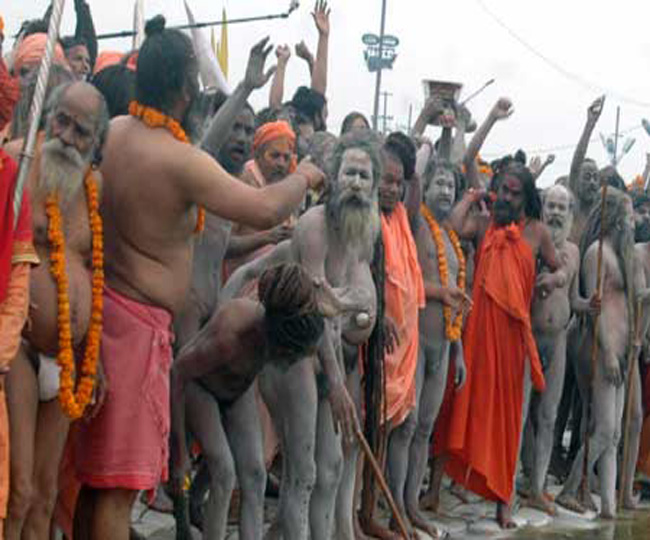 दरअसल, नागा शब्द की उत्पत्ति संस्कृत से हुई है, जिसका अर्थ पहाड़ होता है। पहाड़ पर रहने वाले लोग पहाड़ी या नागा संन्यासी कहलाते हैं। इसका एक तात्पर्य एक युवा बहादुर सैनिक भी है। नागा का अर्थ बिना वस्त्रों के रहने वाले साधु भी हैं। वे विभिन्न अखाड़ों में रहते हैं, जिनकी परंपरा जगद्गुरु आदिशंकराचार्य द्वारा की गई थी। ऐसी मान्यता है कि नागा साधु तीन प्रकार के योग करते हैं, जो उननके लिए ठंड से निपटने में साहयक साबित होते हैं। इसके साथ ही वह अपने विचार और खानपान, दोनों में ही संयम बरतते हैं। नागा साधु एक सैन्य पंथ है और वे एक सैन्य रेजीमेंट की तरह विभक्त होते हैं। नागा साधुओं को विभूति, रुद्राक्ष, त्रिशूल, तलवार, शंख और चिलम धारण करते हैं।