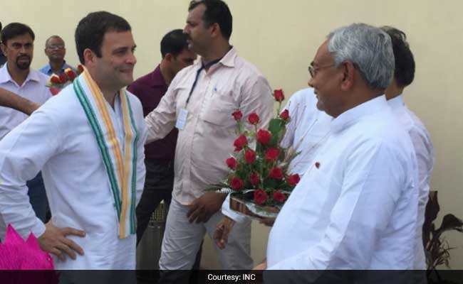 पटना: बिहार के मुख्यमंत्री नीतीश कुमार ने मंगलवार शाम कांग्रेस उपाध्यक्ष राहुल गांधी से बात की. सूत्रों के अनुसार बातचीत में बिहार के मुख्यमंत्री ने उपराष्ट्रपति चुनाव में राष्ट्रपिता महात्मा गांधी के पौत्र गोपालगृष्ण गांधी को समर्थन देने के संकेत दिए हैं. गौरतलब है कि मंगलवार को ही विपक्ष ने पश्चिम बंगाल के पूर्व राज्यपाल गोपालकृष्ण गांधी को उपराष्ट्रपति उम्मीदवार बनाया है.