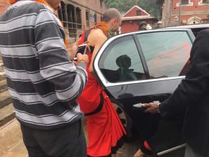काठमाण्डु : भारत की विश्वप्रसिद्ध पीठ ‘कौलान्तक पीठ’ के पीठाधीश्वर ‘महायोगी सत्येंद्र नाथ’ (ईशपुत्र) और ‘माँ प्रिया भैरवी’ नेपाल की धरती पर कदम रखते ही सबसे पहले ‘भगवान पशुपति नाथ’ के दर्शनों के लिए पहुंचे। ‘प्रिया-ईशपुत्र’ ने ‘पशुपति’ में ‘रुद्राभिषेक’ और ‘यज्ञ’ में संपन्न किया। लगभग 4 घंटे ‘प्रिया-ईशपुत्र’ ‘पशुपति नाथ’ मंदिर प्रांगण में ही उपस्थित रहे। उनके साथ ‘नेपाल’ के भैरव-भैरवी’ भी थे। ‘कुल देवी-देवता’ और ‘पूर्वजों’ के स्मरण से पूजा शुरू हुई और सभी की मंगल कामना के साथ ‘कर्मकाण्ड’ शुरू हुआ। ‘प्रिया-ईशपुत्र’ ने ‘विश्व शांति’ की मंगल कामना की। ‘प्रिया-ईशपुत्र’ लोगों के लिए ‘पशुपति’ में भी आकर्षण का केंद्र बने रहे। उनहोंने पूरे मंदिर परिसर के दर्शन किये और अपनी और से भोग और भंडारा भी प्रदान किया।