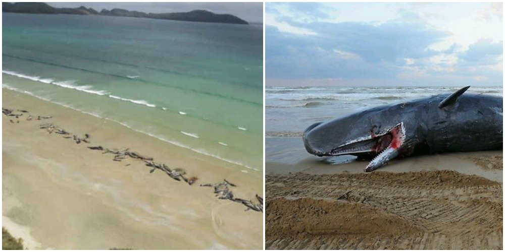 न्यूजीलैंड में समुद्र किनारे बिछी 145 व्हेलों की लाशें !
