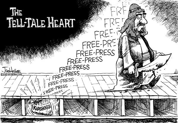 सऊदी अरब के शाही परिवार की आलोचना वाले कुछ कार्टूनों में अमरीकी राष्ट्रपति डोनल्ड ट्रंप को सऊदी के प्रिंस के ख़ून से सने हाथ धुलवाते हुए दिखाया गया है.इसी तरह सऊदी सरकार का समर्थन करने वाले मीडिया संस्थानों ने भी मज़ाकिया अंदाज़ में तुर्की के दावों को झूठा बताया है.इमाद हज्जाज एक कार्टूनिस्ट हैं जो अल-अरबी अल जदीद में काम करते हैं. इमाद जॉर्डन के नागरिक हैं.ख़ाशोज्जी की गुमशुदगी के बाद से ही इमाद लगातार इस संबंध में ट्वीट कर रहे हैं.एक और कार्टून में जमाल ख़ाशोज्जी का स्केच बनाया गया है. साथ में एक कलम भी बनी है और सवाल लिखा गया है कि ‘जमाल कहां हैं?’एक अन्य कार्टून में बोतल से गिरती स्याही को काग़ज़ पर बहते हुए दिखाया गया है. इस काग़ज़ पर ख़ाशोज्जी का नाम लिखा है. स्याही का रंग काले से लाल में बदल रहा है. इस कार्टून के बारे में लिखा गया है, ”ना तो स्याही को मिटाया जा सकता है और ना ख़ून को.”इसी तरह से मुस्लिम ब्रदरहुड के समर्थन वाली लंदन स्थित अरबी 21 वेबसाइट ने भी कुछ कार्टून पोस्ट किए हैं.इन कार्टूनों में पेन को स्वतंत्रता का प्रतीक बताया गया है.ईरान की अर्ध-सरकारी समाचार एजेंसी फ़ार्स ने अपनी वेबसाइट पर एक कार्टून प्रकाशित किया है जिसमें सऊदी का एक अधिकारी ख़ाशोज्जी की लाश को तलवार से काट रहा है.उनके पीछे सऊदी का झंडा लगा है और किंग की तस्वीर लगी है. इस तस्वीर में किंग ने अपने मुंह पर उंगली रखी है जो दर्शाती है कि शाही परिवार सबकुछ जानते हुए भी इस मामले में चुप्पी साधे रहा.अल-जज़ीरा के पत्रकार मोहम्मद नस्र ने इस कार्टून को ट्वीट किया है और लिखा है, ”जमाल ख़ाशोज्जी की हत्या पर बेहद शानदार कार्टून है. वे सच्चाई को छिपाना चाहते हैं. यही वजह है कि उन्होंने अल-जज़ीरा चैनल को बंद करने के लिए अभियान चलाया.”जॉर्डन में रहने वाले कैरिकेचर आर्टिस्ट ओसामा हज्जाज ने 15 अक्टूबर को एक कार्टून पोस्ट किया था जिसमें सऊदी के दूतावास के बाहर सऊदी का एक आदमी ख़ून से सनी गठरी घसीट रहा है और उस आदमी पर एक खुफ़िया व्यक्ति नज़र रखे हुए है.हालांकि इसी तरह सऊदी का समर्थन करने वाले कार्टून भी सोशल मीडिया पर छाए हुए हैं.सऊदी के समर्थन वाले मीडिया संस्थानों ने भी मज़ाकिया लहजा अपनाते हुए शाही परिवार की निंदा करने वालों की आलोचना की है.अमज़द रसमी सऊदी समर्थन वाले समाचार पत्र अल-शर्क़ अल-अवसत में व्यंग्यचित्र बनाते हैं. इसका दफ़्तर लंदन में है.उन्होंने एक कैरिकेचर बनाया है जिसमें तेल क़तर के मीडिया को एक ऐसे पेट्रोल पंप के रूप में दिखाया है जो पास में लगी आग पर तेल छिड़क रहा है.सऊदी की समाचार वेबसाइट सब्क़ ने उस ख़बर से जुड़ा कार्टून पोस्ट किया है जिसमें समाचार एजेंसी रॉयटर्स ने पहले इस्तांबुल स्थित सऊदी के राजद