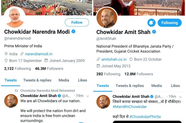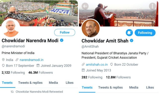 प्रधानमंत्री मोदी समेत भाजपा नेताओं ने ट्विटर हैंडल पर अपने नाम के पहले लिखा चौकीदार