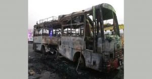 आग लगने के करीब 20-25 मिनट बाद घटनास्थल पर दमकल की गाड़ी पहुंची और आग पर काबू पाया लेकिन तब तक पूरी बस जलकर खाक हो चुकी थी.