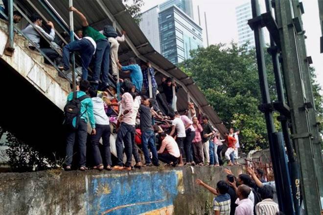 – परेल इलाके में स्थित एलफिन्स्टन रेलवे फुट ओवर ब्रिज पर।