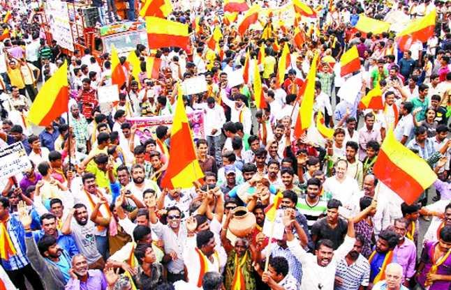 प्रदर्शनकारियों ने बेंगलूरु सहित अन्य शहरों व कस्बों में सड़कों पर टायर जलाकर व पत्थर डालकर जगह जगह रास्ता जाम कर दिया। फिल्म और टीवी सीरियल कलाकारों, कॉर्पोरेट सेक्टर व समाज के अन्य वर्गों के लोग भी विरोध प्रदर्शन में शामिल हुए। राजधानी बेंगलूरु में बंद समर्थकों ने विभिन्न इलाकों में मोटरसाइकिल रैलियां निकाली व दुकानों को बंद करवाया। प्रदर्शनकारियों ने चौराहों पर टायर जलाकर व तमिलनाडुु की मुख्यमंत्री जे. जयलिलता के पुतले फूंक कर आक्रोश जताया।