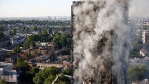 बुधवार सुबह लंदन के लैरिमर रोड में वाइट सिटी के ग्रेनफेल टावर में भयंकर आग लग गई। इस 27 मंजिला इमारत में कुल 120 फ्लैट्स हैं। आग इतनी भीषण थी कि इसको बुझाने के लिए 200 दमकलकर्मी मशक्कत कर रहे हैं। हालांकि आग अब काबू में है।
