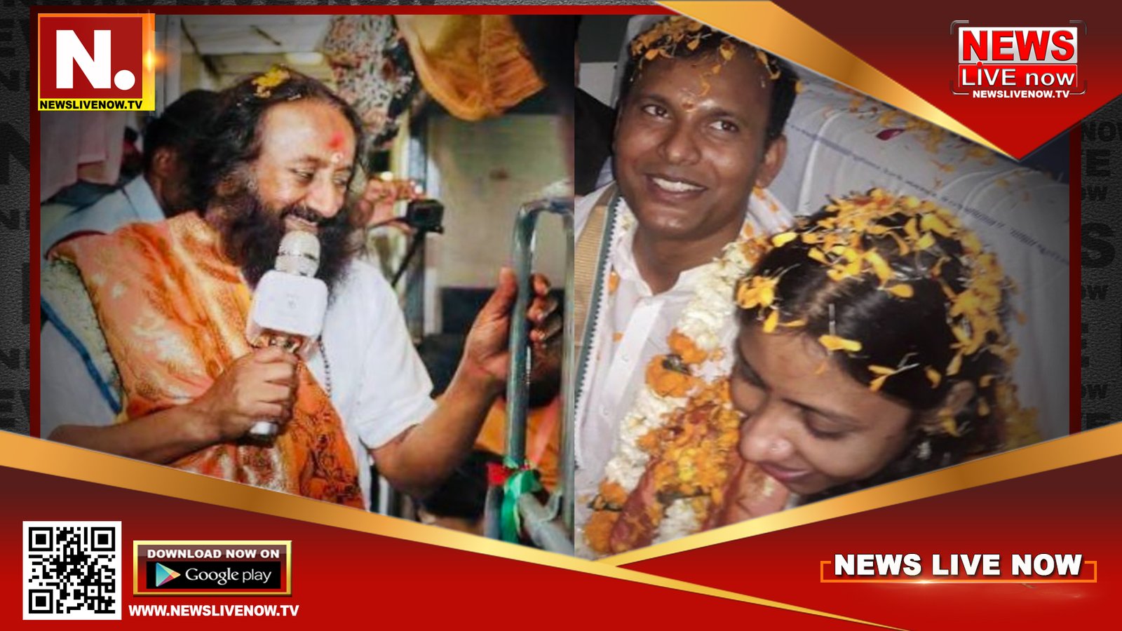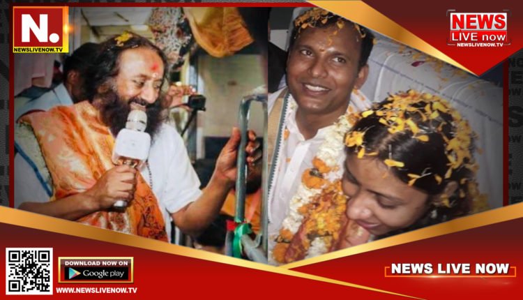 श्री श्री रविशंकर के सान्निध्य में ट्रेन सफर के दौरान शादी के बंधन में बंधा जोड़ा।