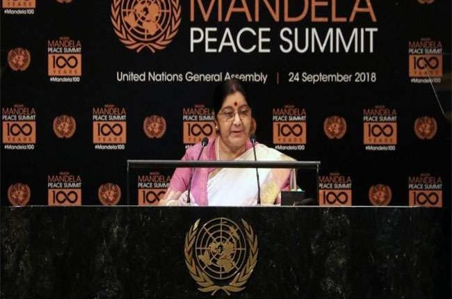 सुषमा स्वराज : नेल्सन मंडेला को भारत रत्न मानते हैं हम