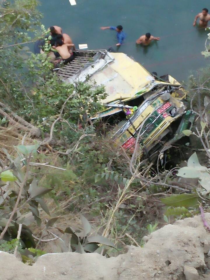 मंडी। जिला मुख्यालय के साथ लगते बिद्रावणी में आज (शनिवार) दोपहर बाद एक निजी बस ब्यास में लुढ़क गई। दुर्घटना इतनी खतरनाक थी की समाचार लिखे जाने तक इस हादसे में 14 लोगों की मौत हो चुकी थी। घायलों को 108 एंबुलेंस की मदद से जोनल अस्पताल मंडी में भर्ती किया गया है, जहां उनका उपचार किया जा रहा है। प्रशासनिक अधिकारी भी मौके पर पहुंच गए हैं। जानकारी के अनुसार आज दोपहर को एक निजी बस मंडी से कुल्लू की ओर जा रही थी। इस दौरान बिद्रावणी के समीप पहले बस की टक्कर एक बाइक से हो गई उसके बाद गाड़ी अनियंत्रित होकर ऊपर से नीचे सीधे ब्यास में लुढ़क गई। बताया जा रहा है कि गाड़ी में 30 से 35 लोग सवार थे। हादसे की सूचना मिलते ही स्थानीय लोगों के साथ-साथ प्रशासन भी मौके पर पहुंच गया है। सभी घायलों को निकाल लिया गया है और उन्हें उपचार के लिए मंडी अस्पताल में भर्ती करवाया गया है। गौर रहे कि ब्यास में लुढ़कने के बाद बस बीच में ही फंस गई।