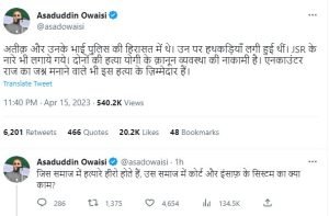 जिस समाज में हत्यारे हीरो होते हैं, उस समाज में कोर्ट और इंसाफ़ के सिस्टम का क्या काम, अतीक अहमद की हत्या पर बोले असदुद्दीन ओवैसी