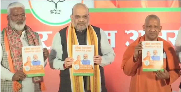 उत्तर प्रदेश विधानसभा चुनावों के लिए भारतीय जनता पार्टी ने आज अपना मेनिफेस्टो जारी कर दिया है । भाजपा ने अपने घोषणापत्र को लोक कल्याण संकल्प पत्र 2022 नाम दिया है । पूर्व राष्ट्रीय अध्यक्ष व केंद्रीय गृहमंत्री अमित शाह ने सीएम योगी के साथ बीजेपी का मेनिफेस्टो जारी किया ।