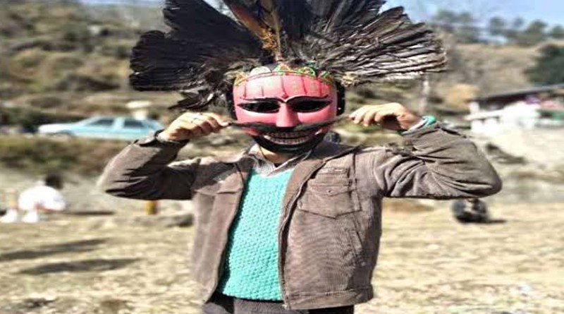 मुखौटा पहने देवता का गूर फेंकता है जो फूल, माना जाता है देव वरदान !