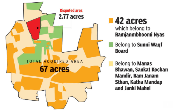 बता दें कि सुप्रीम कोर्ट में सरकार का कहना है कि महज 0.313 एकड़ के एरिया पर ही विवाद है। बाकी 67.390 एकड़ जमीन गैर-विवादित है। सरकार ने 1993 में 67.70 एकड़ जमीन एक्वायर की थी। 1994 में सुप्रीम कोर्ट कह चुका है कि अगर केंद्र सरकार अधिग्रहण की गई गैर-विवादित जमीन को वापस देना चाहे तो दे सकती है।
